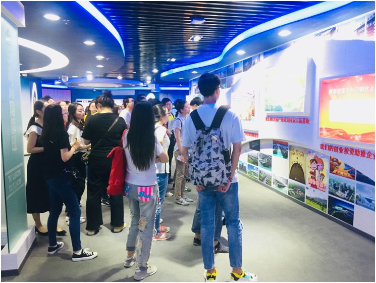 老师与学生们游览泰豪装修公司展馆设计